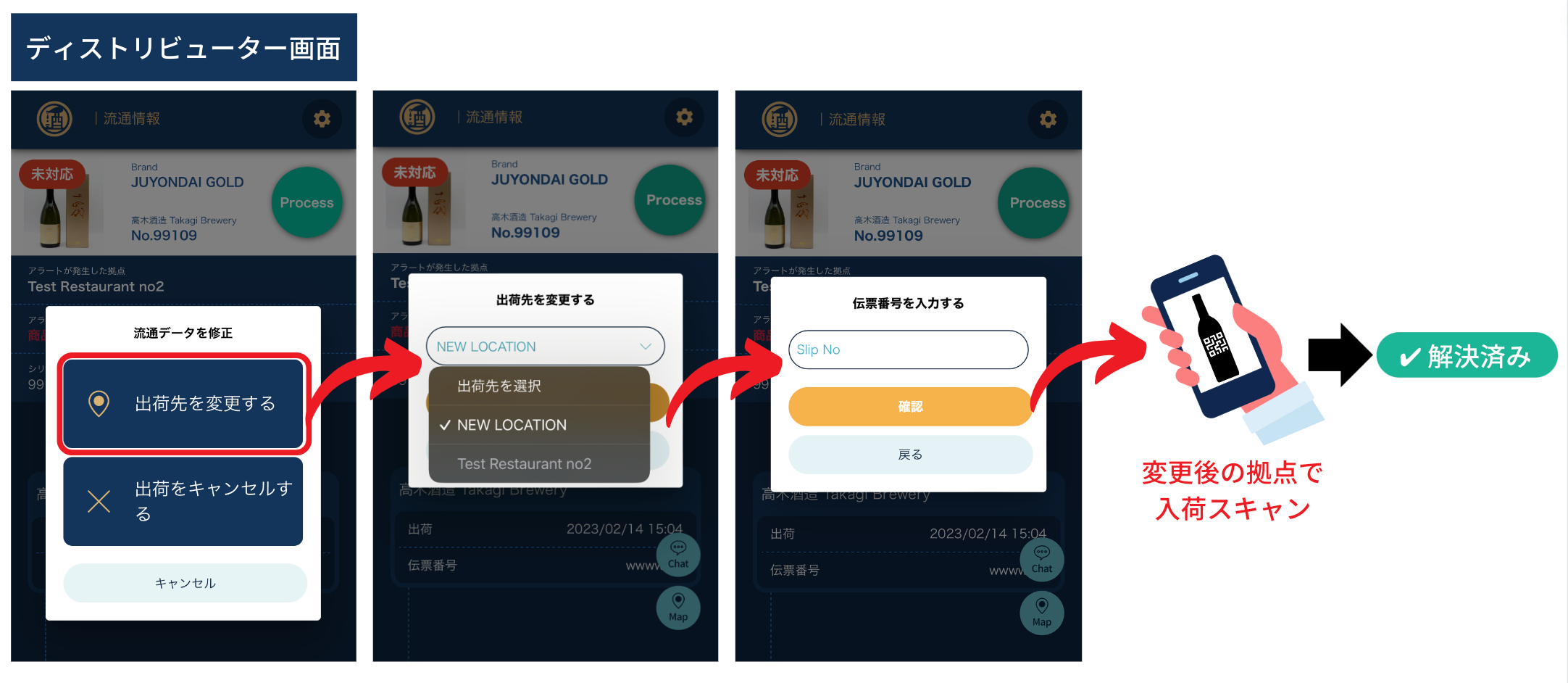 レストランが該当のボトルを「入荷スキャン」することにより、アラートは自動で解決されます。