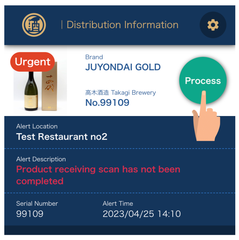 確認後,將向管理員、釀酒廠和分銷商發送以下通知電子郵件,並自動將警報更新為“未解决”。