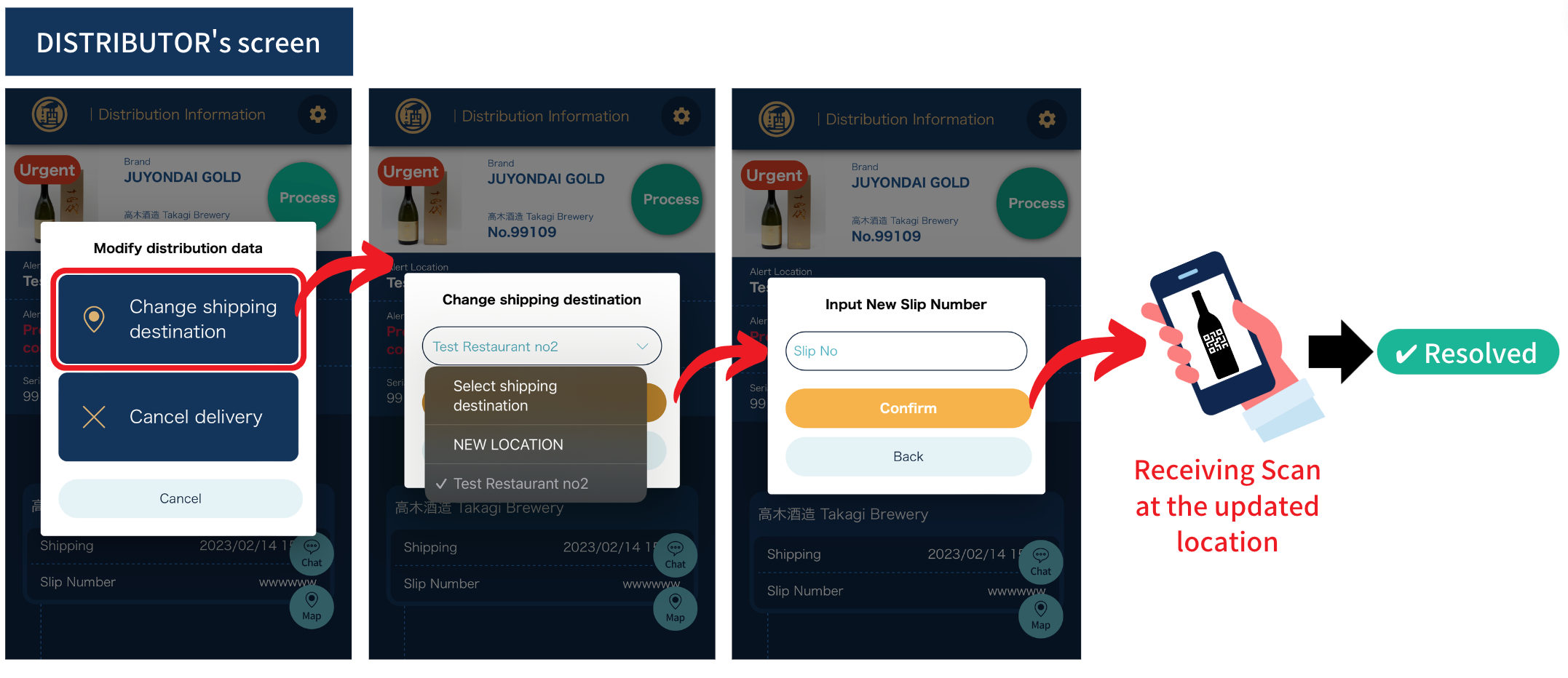 ❸如果分銷商在交貨掃描過程中選擇並注册了錯誤的交貨目的地