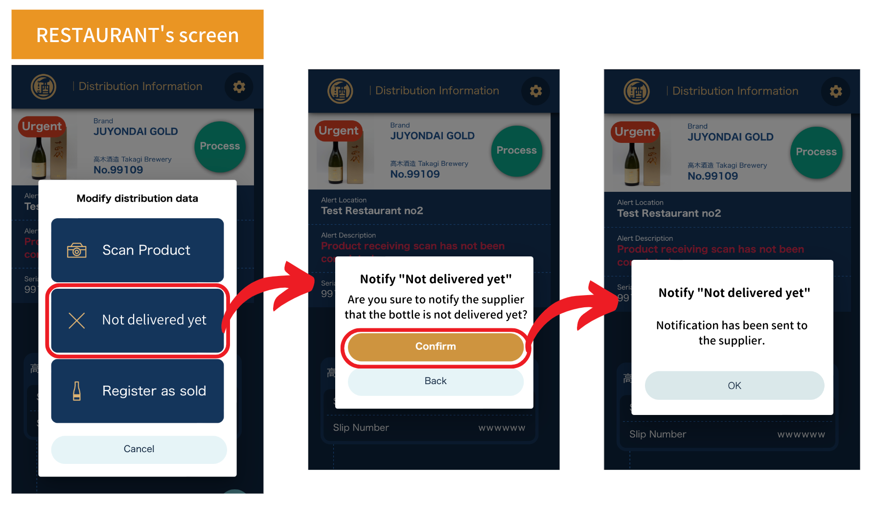 TITLE:[SakeBlockchain] Delivery has not arrived at "Restaurant's Name"
