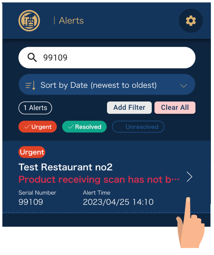 → 當餐廳進行接收掃描時,警報將自動更新為已解决。