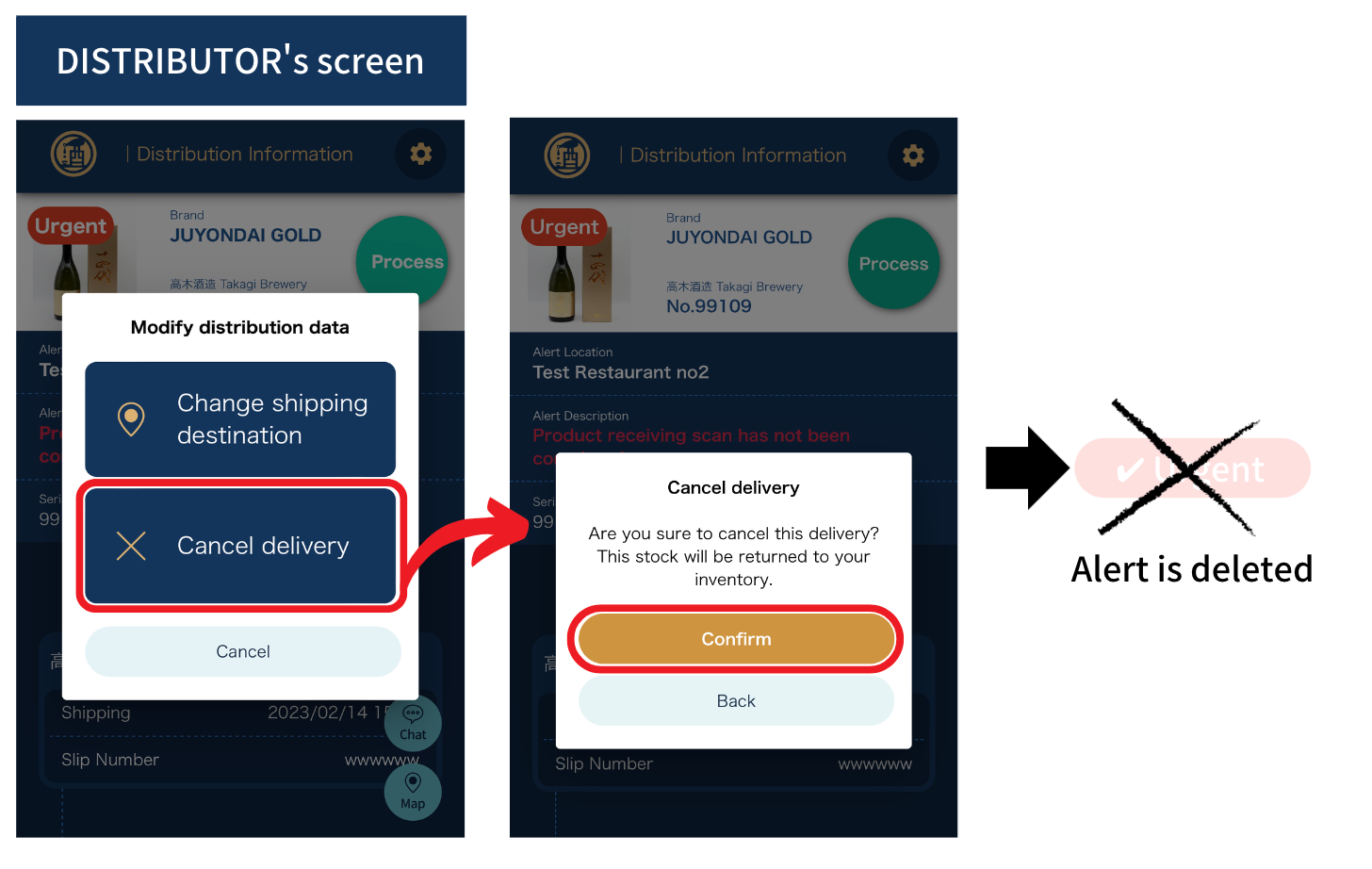 → 配送可以從分銷商的“分發資訊”頁面或應用程序的“配送歷史記錄”頁面取消。